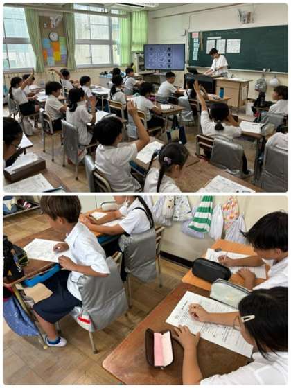 秋刀魚、太刀魚、鮪、鱈、鯵、鮭など虫食いクイズや写真、漢字で魚について学びました。