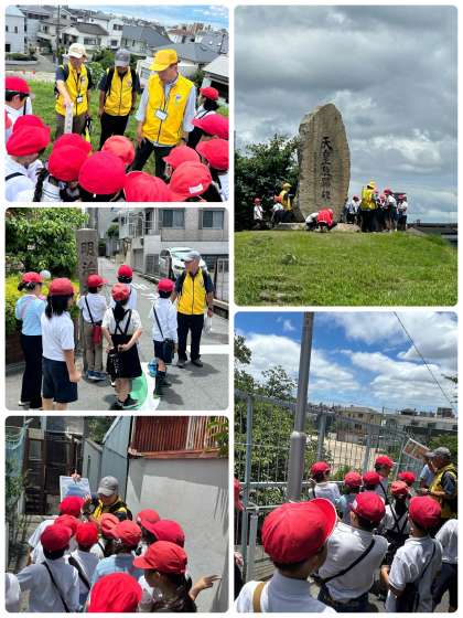 21日,住吉歴史案内人の皆さんに、帝塚山古墳を案内していただきました。大阪市に唯一綺麗な形で残っている前方後円墳です。また、東粉浜小学校のあたりは昔は海であったことも教えていただきました。