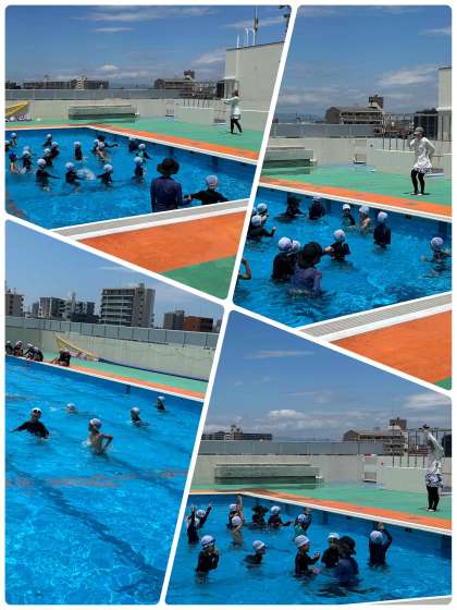 プールの中では、走ったり、体操したりして、水に慣れていきました。