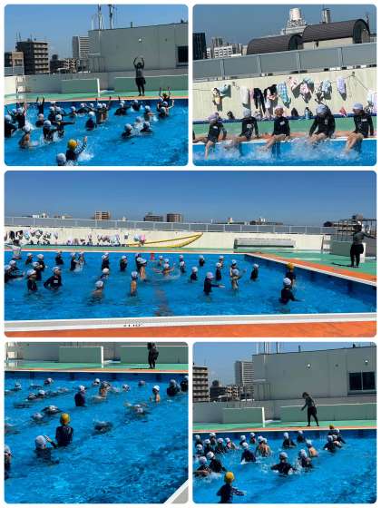 水に慣れることを目標に頑張っています。また,浮くことにも挑戦しています。