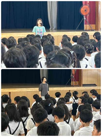 また土曜日に区民ホールで行われた標語コンクールの表彰について、全校児童の前であらためて表彰しました。