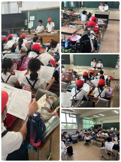 17日5時間目、地域ふれあい会をおこないました。夏休みに向けて,危険な場所を確認したり、夏休みのくらしについて確かめたりしました。