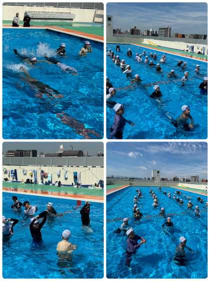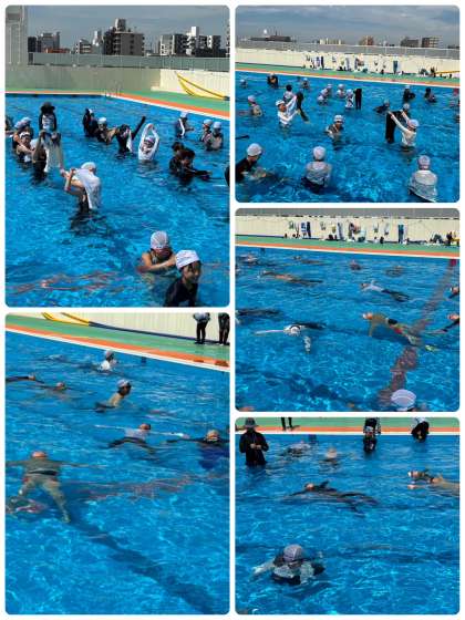 水着の時と服を着た時の違いを、水の中で走ったり、泳いだり、服を着脱したりして、その大変さを体験しました。