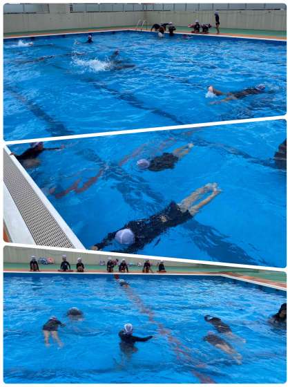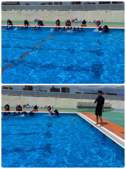 2学期初めてのプールでした。水慣れをして、水遊びをしたあとに、けのびにチャレンジしました。顔をつけたり、もぐったりするのがまだこわいと感じる友だちもいたけれど、ジャンプしたり、水のかけ合いをしたり、できることにチャレンジしました。暑いので、水分補給や休憩をしながら取り組みました。