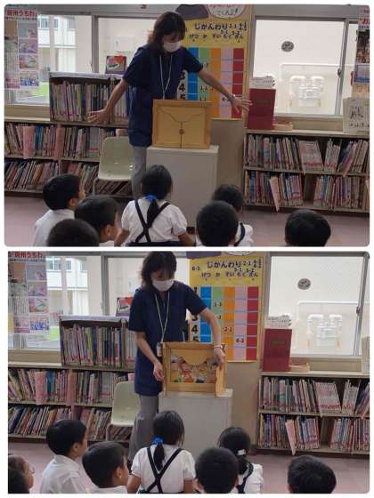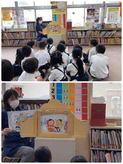 図書の時間に防災についての紙芝居を読んでもらいました。避難の練習をすることの大切さや地震の怖さを改めて考えることができました。朝にも学級で880万人訓練についての話をしたので、お家でも実際に災害が起こったときの行動を話し合ってみてください。