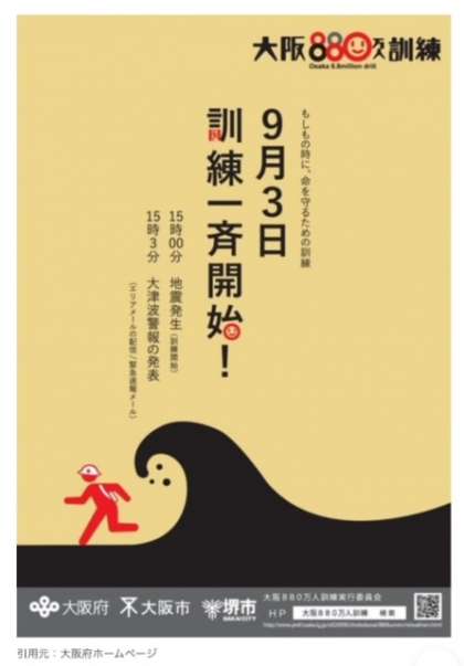 ?本日15時より、地震・津波の大阪880万人訓練が行われました。
