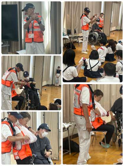 また骨折の疑いの時には、教科書やレジ袋などで、固定の仕方も教えていただきました。