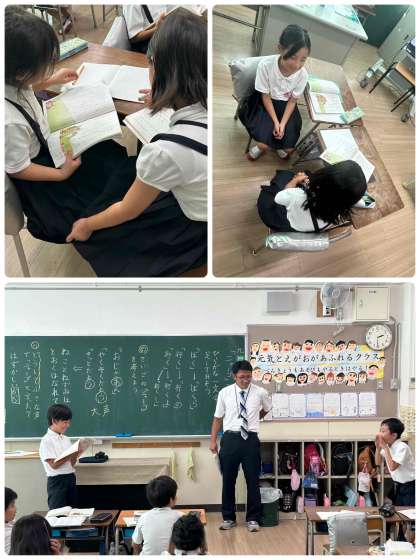 登場人物の気持ちを考え、それを音読に工夫して表していました。ペアで会話劇にも取り組んでいました。