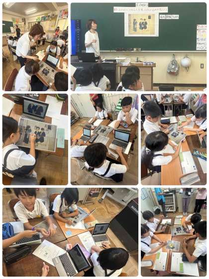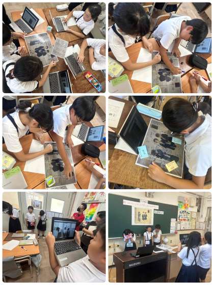 6時間目、図工科で研究授業が行われました。しかも、鑑賞の授業。提示された絵を鑑賞して、感じたことを話し合い、深めていくという授業です。参観していた先生も、新しい学びについて、どうすればいいか考えながら参観していました。