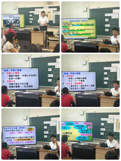 最後には、指導講評として、大阪市小学校教育研究会図工部長の育和小学校長の青山先生から鑑賞授業についてご指導いただきました。