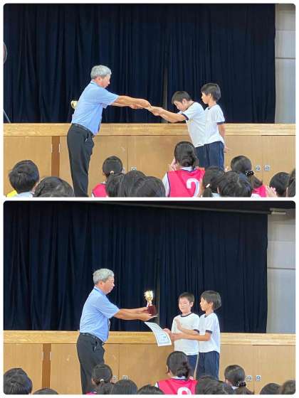 集会の最後には、この前の大会で優勝したガンバーズの表彰をしました。