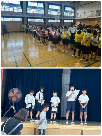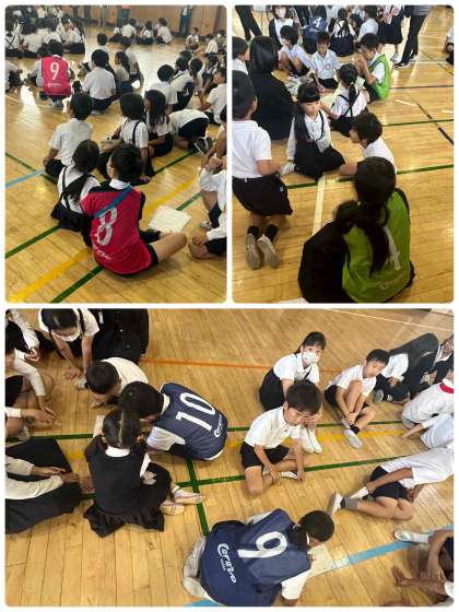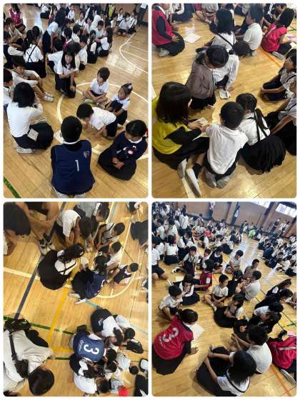 今日は、先生の声当てクイズでした。工夫されていた声に、どのグループも,頭を悩ませていましたが、しっかり相談しながら答えていきます。
