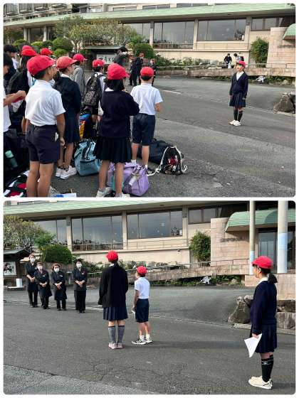 退舎式を行いました。代表児童がしっかりあいさつできていました。気持ちよく,楽しく過ごせた感謝の気持ちを伝えることができていました。