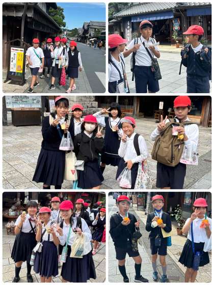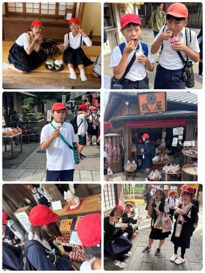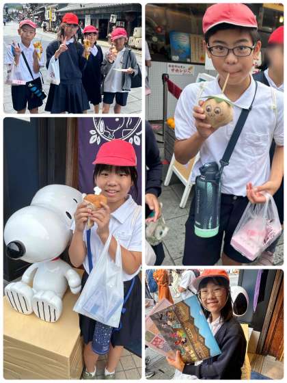 お土産を買ったり、自分たちが食べたり飲んだりして、友だちと楽しく過ごしています。