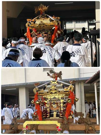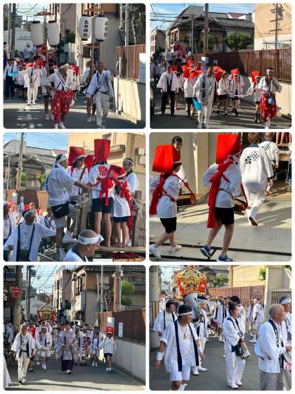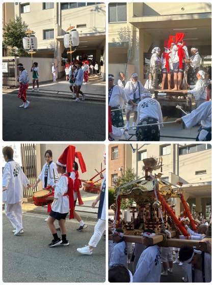 神輿だけでなく、子どもたちのふとん太鼓も一緒に練り歩きます。