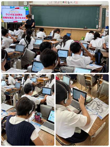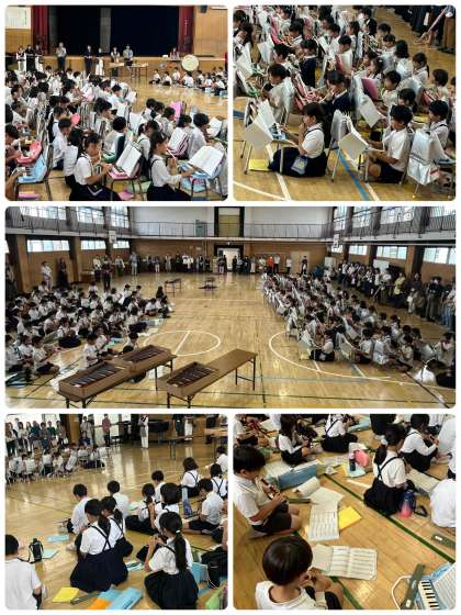 普段の授業なのですが、たまたま出前授業が当たった学年や、2学年合同で互いの学習の成果を聴き合う音楽の授業などもありました。
