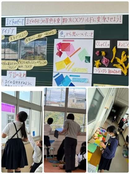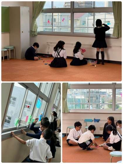 「まどをのぞいて」という単元で〇〇ワールドに変身させようと試行錯誤をしたり、対話をしたりしながら意欲的に活動をしていました。