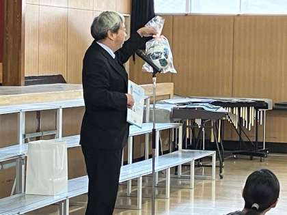 校長先生からは、先週の土曜日に芝生のオーバーシードをしたので養生のためしばらく入れないこと、サッカーボールの寄贈があったこと、などの話がありました。