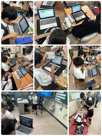 まずは自分の考えを持ち、それを試し、動画で撮影して検証します。その結果を同じおもちゃを作っている班のメンバーと共有しています。