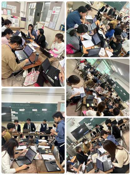 放課後、研究授業についての研究討議会を行いました。一人一台端末を活用した授業でしたが、子どもの考えを共有するために効果的であったかどうか、生活科の授業の指導のあり方、協働的な学びとは、などを視点に話し合いました。