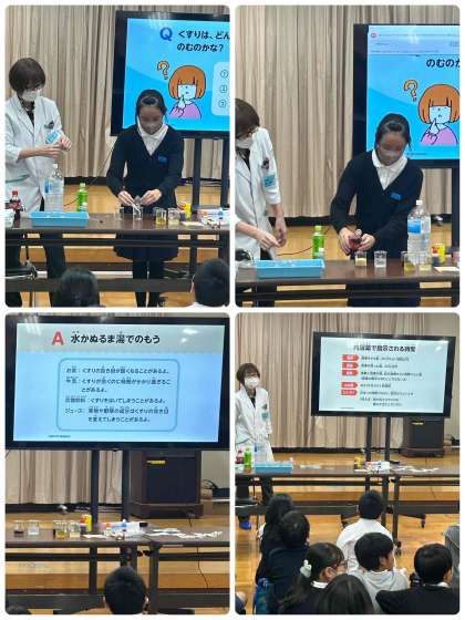6年生が、学校薬剤師さんに特別授業として、薬について出前授業をしていただきました。