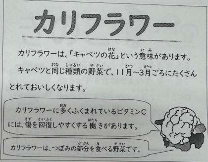えびフライカレーライスのえびフライは、開きえびフライです。また、今日は、旬のカリフラワーを使ったピクルスが登場しました。