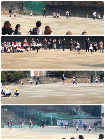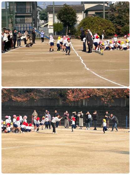 先日行われた東粉浜幼稚園の運動会で、最後雨天のためできなかったリレーですが、本日保育参観の後、本校運動場を使って行いました。