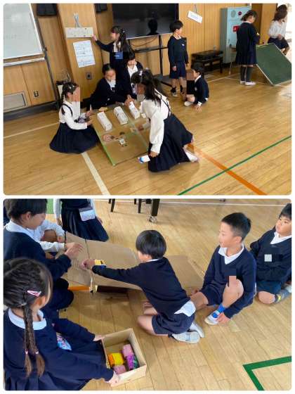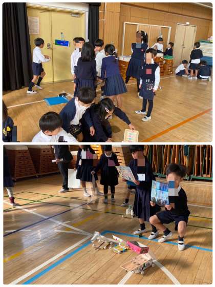 前の日からわくわくしていた1年生、おもちゃの説明がうまくできるかどきどきしていた2年生でした。来年はヨットカーを作りたいな、ころがるおもちゃはどうやって作るんだろうと2年生の学習を楽しみにしている姿が見られました。