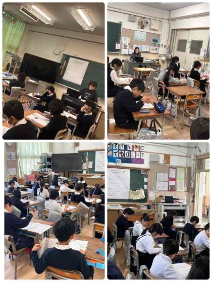 2時間目算数、3時間目理科。そして、5、6年生は4時間目英語の問題に取り組んでいます。