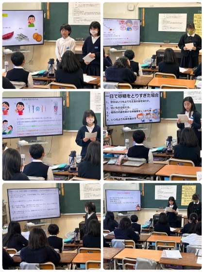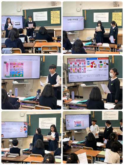 まずはじめに委員会のみんなが調べたことの発表を行いました。続いて学校歯科医師会の梅山先生から食生活と食育という題でお話いただきました。