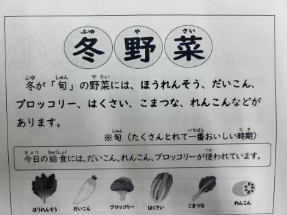 です。レンコンなど冬が旬の野菜がたっぷり入ったカレーライス。美味しいと喜んで食べている子どもがたくさんいました。