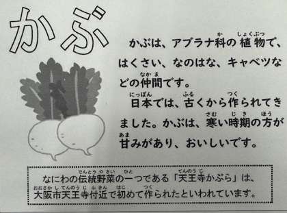 今日は旬の「かぶ」を使った和え物です。日本では、かぶは昔から作られてきた野菜で、春の七草のひとつでもある「すずな」としても親しまれています。今日は、ゆず果汁を使ってさっぱりと仕上げています。