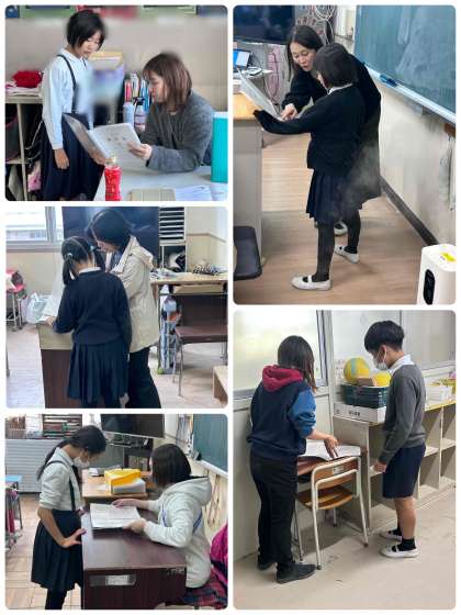 2学期最後の日、各学級で担任の先生から通知表を手渡しされました。一人一人丁寧に説明し、次の学期の励みとなりました。