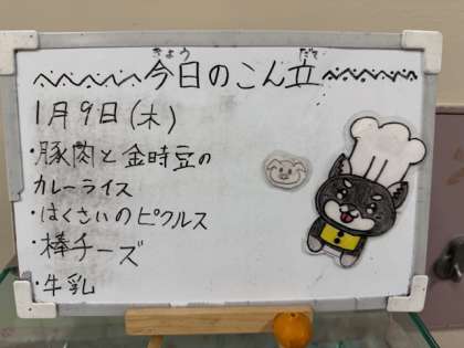 3学期最初の給食は、金時豆が入ったカレーライスです。豆類の苦手な子どもたちにも食べやすかったようです。