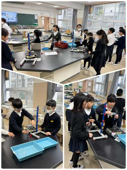 正しく安全に実感をするためには、どんな点に気をつければよいか確認し、保護メガネを使いながらグループで協力し合って取り組みました。