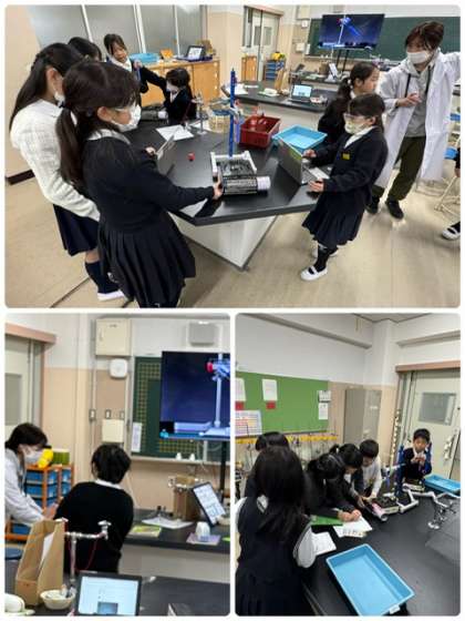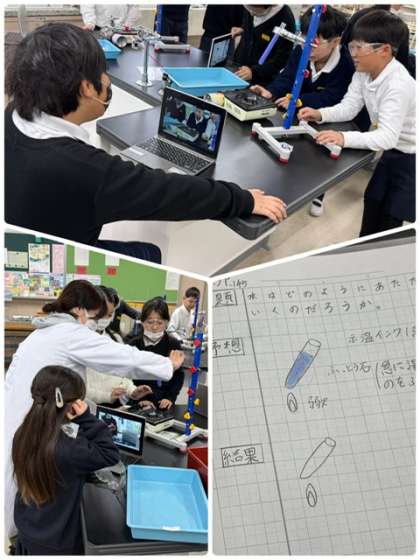 理科室で4年生が水のあたたまり方について試験管、ガスコンロなどを使って実験をしました。