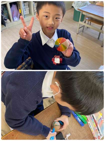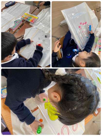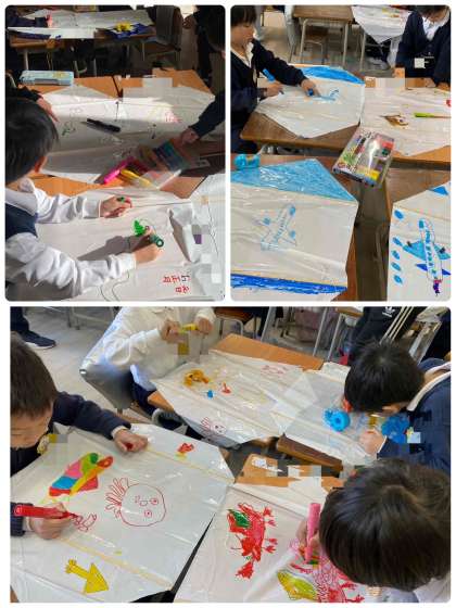 「むかしからつたわるあそびをたのしもう」の学習で、たこあげやこまなどの遊びを楽しみます。たこやこまに絵を描いて、自分だけのものを作ります。うまく遊べるのか楽しみです。