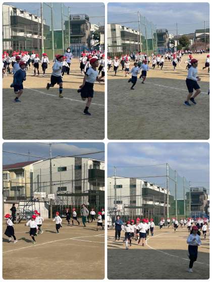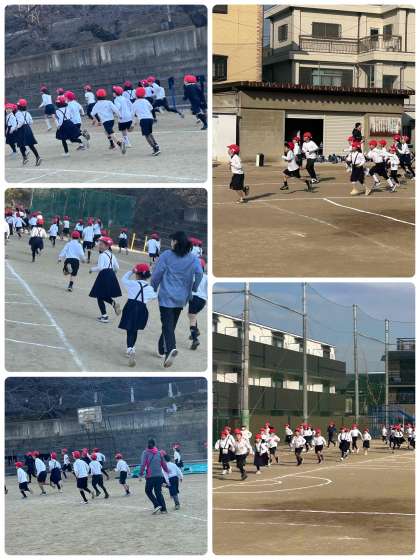 今日もいい天気。かけ足タイム、体調に気をつけながら,運動場を元気に走っています。