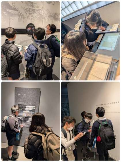 映画を見終わった後は、各自で施設内を見学しています。ワークシートに調べたことを記入したり、映像を視聴したりしながら意欲的に見学しています。