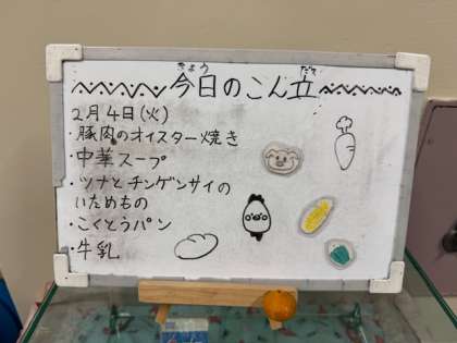 昨日は立春でしたが、今日から寒さがまた一段ときびしくなりました。そんな中で鶏肉、にんじん、玉ねぎ、白菜が入ったあったかいスープで内からあたたまることができました。