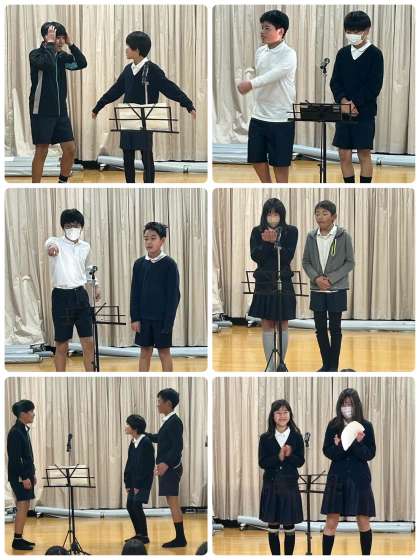 午後からは、午前の練習の成果発表として、多目的室でみんなの前で漫才を披露しました。