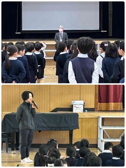 寒い朝ですが講堂での児童朝会から1週間をはじめます。