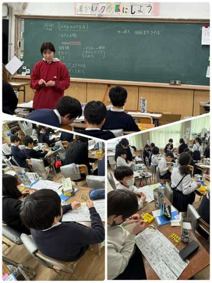 先生の指示やアドバイスを聞き、説明書もみながら100回巻きに挑戦していました。