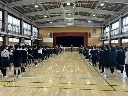 今日の児童集会は、1年生から5年生までで、来週のありがとう集会に向けて、リハーサルを行いました。並ぶ場所や全体の流れを確かめていきました。