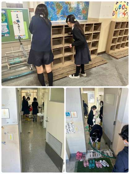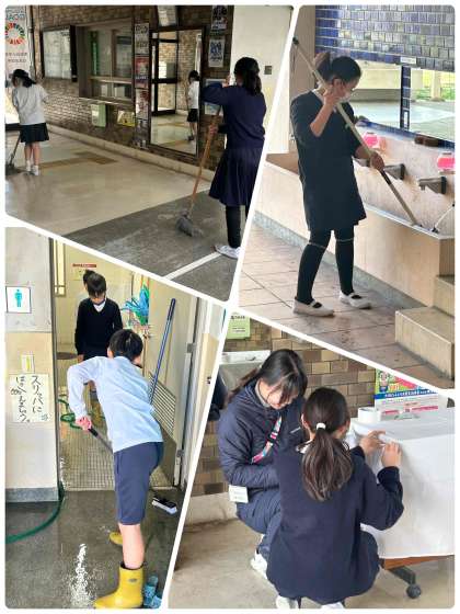 いよいよ明日卒業式。在校生代表として、5年生が準備を行いました。会場づくりの手伝いだけでなく、トイレや廊下の清掃など、しっかりやり遂げていました。