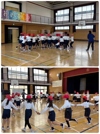 「みんなで楽しく体を動かそう」をめあてに、体ほぐしの運動をしました。みんなで1つの輪になったり、体ジャンケンやなべなべそこぬけなど楽しく体を動かしました。