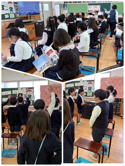 初めての音楽室での授業です。音楽楽しみ!とわくわくしながら、音楽室に向かいました。リズムに乗って返事をしたり、音楽に合わせてリズムを打ったり、歌う声で歌ったりしました。
