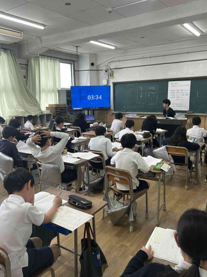 1時間目、5年生が国語と算数の問題に取り組んでいます。