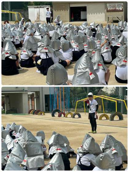 校長先生からは、火災の場合は、防火シャッターが降りることも、確認されました。そして黙って先生方の指示に従い、運動場に出たら走ることも確認しました。