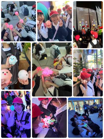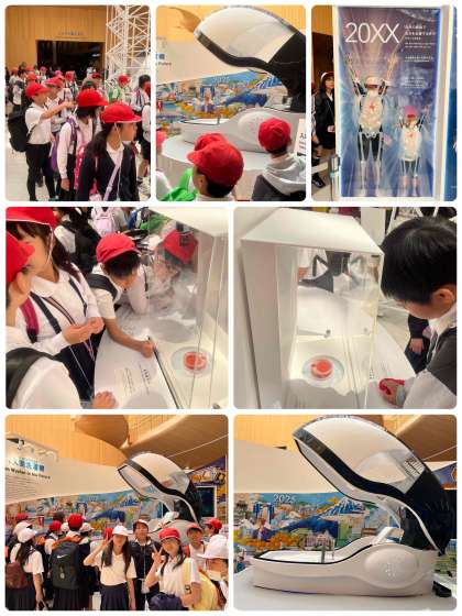 移動中に見えたパビリオンや、大阪ヘルスケアパビリオン、ドイツ館の様子です。ドイツ館では、一人ひとりにキャラクターが手渡され案内され癒されていたようです。